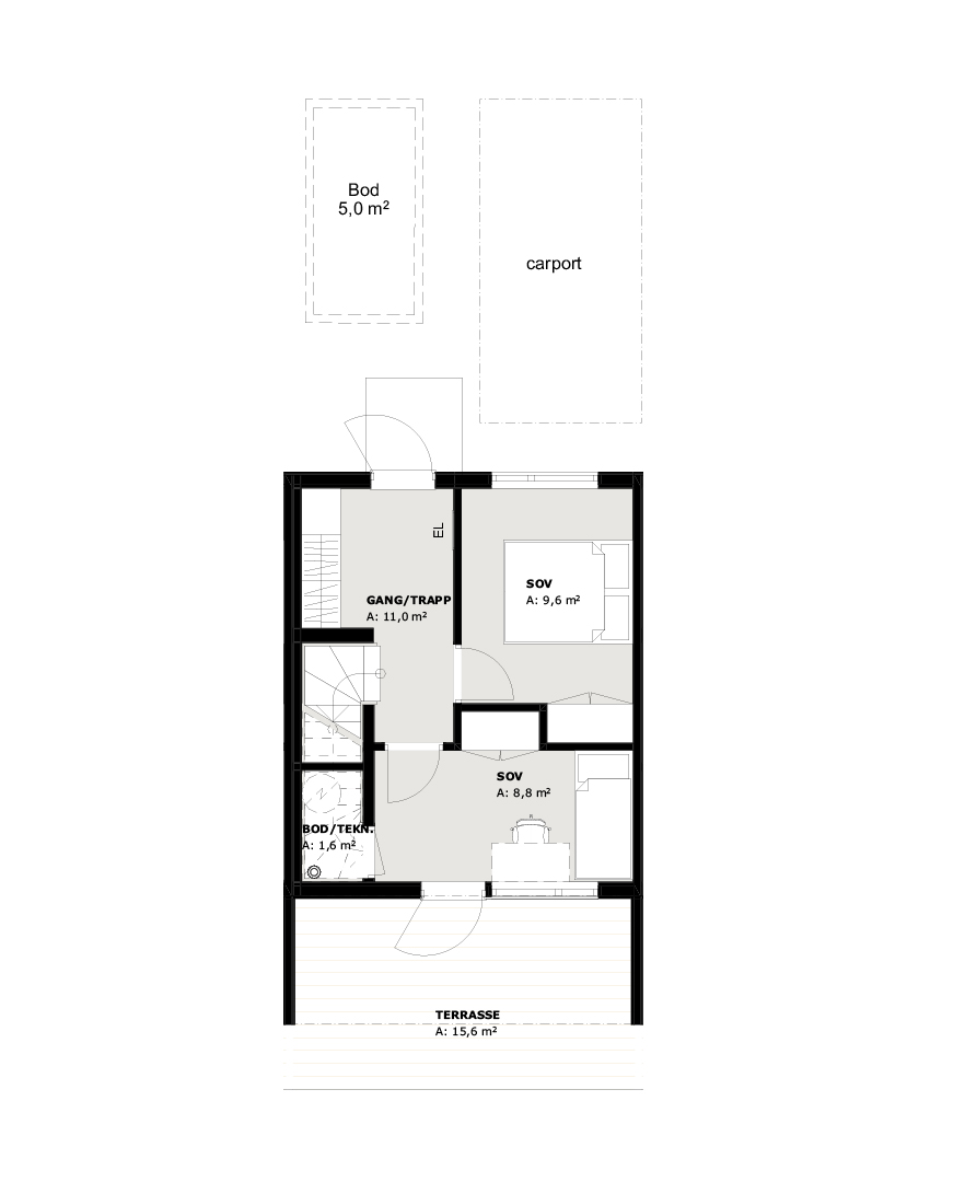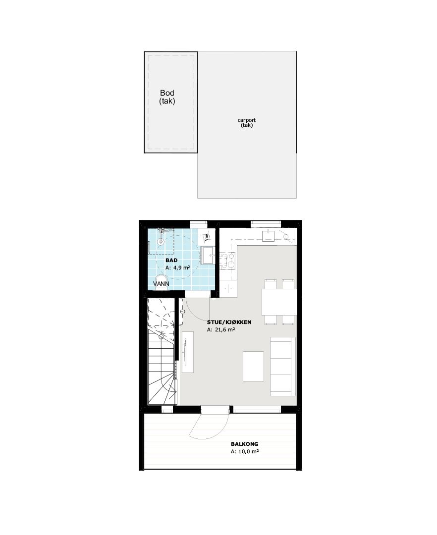 Det finnes to leiligheter av denne typen i byggetrinn 1. Til leiligheten følger også egen garasjeplass med utebod ved garasjen.